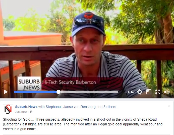 BARBERTON - Three suspects, allegedly involved in a shoot-out in the vicinity of Sheba Road last night, are still at large. The men fled after an illegal gold deal apparently went sour and ended in a gun battle.