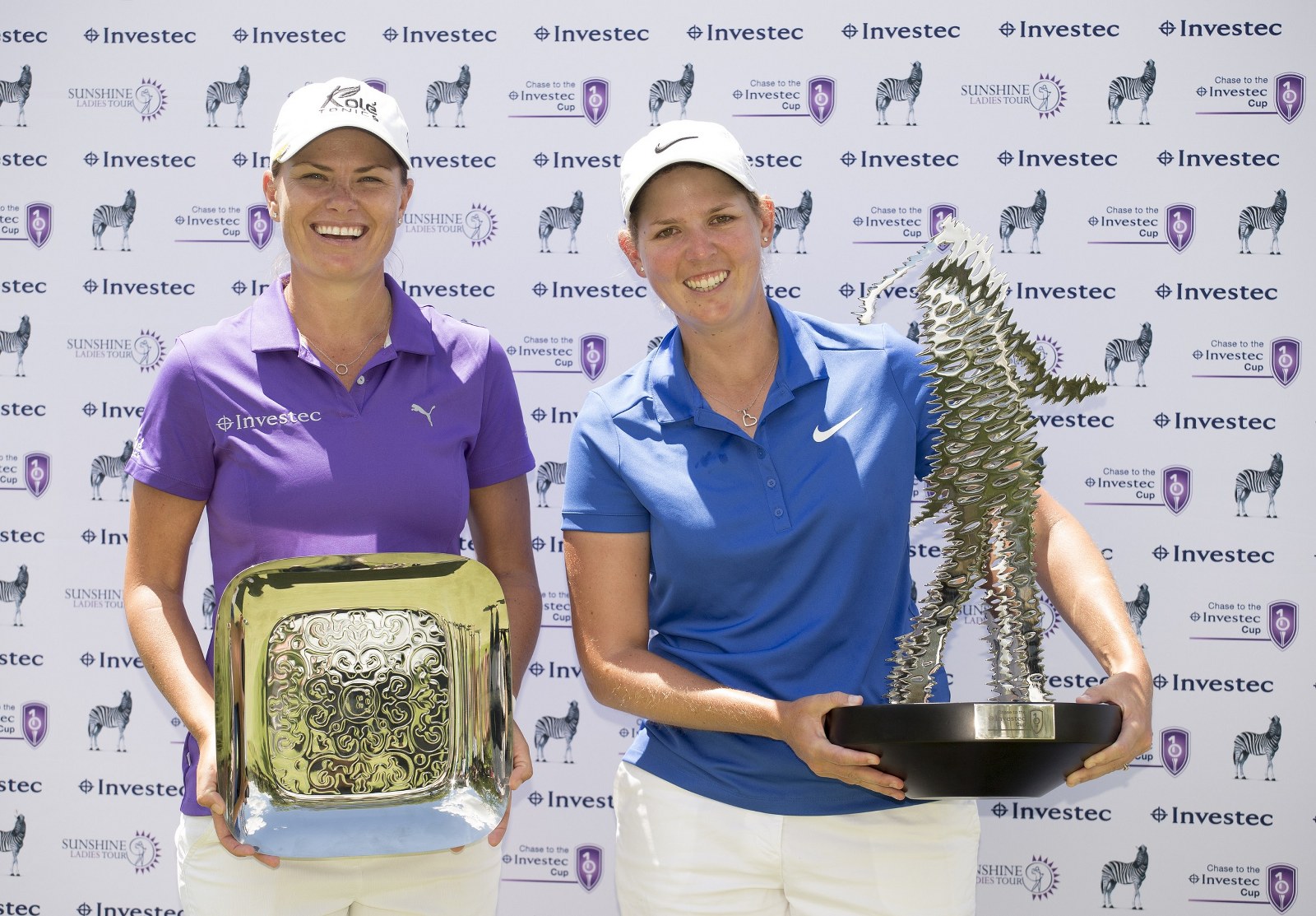 Chase to the Investec Cup for Ladies champion Ashleigh Buhai and Lee-Anne Pace, who celebrated her 10th Sunshine Ladies Tour title with a two-stroke victory in the 2017 season-finale at Millvale Private Retreat. Photo credit: Sunshine Ladies Tour.