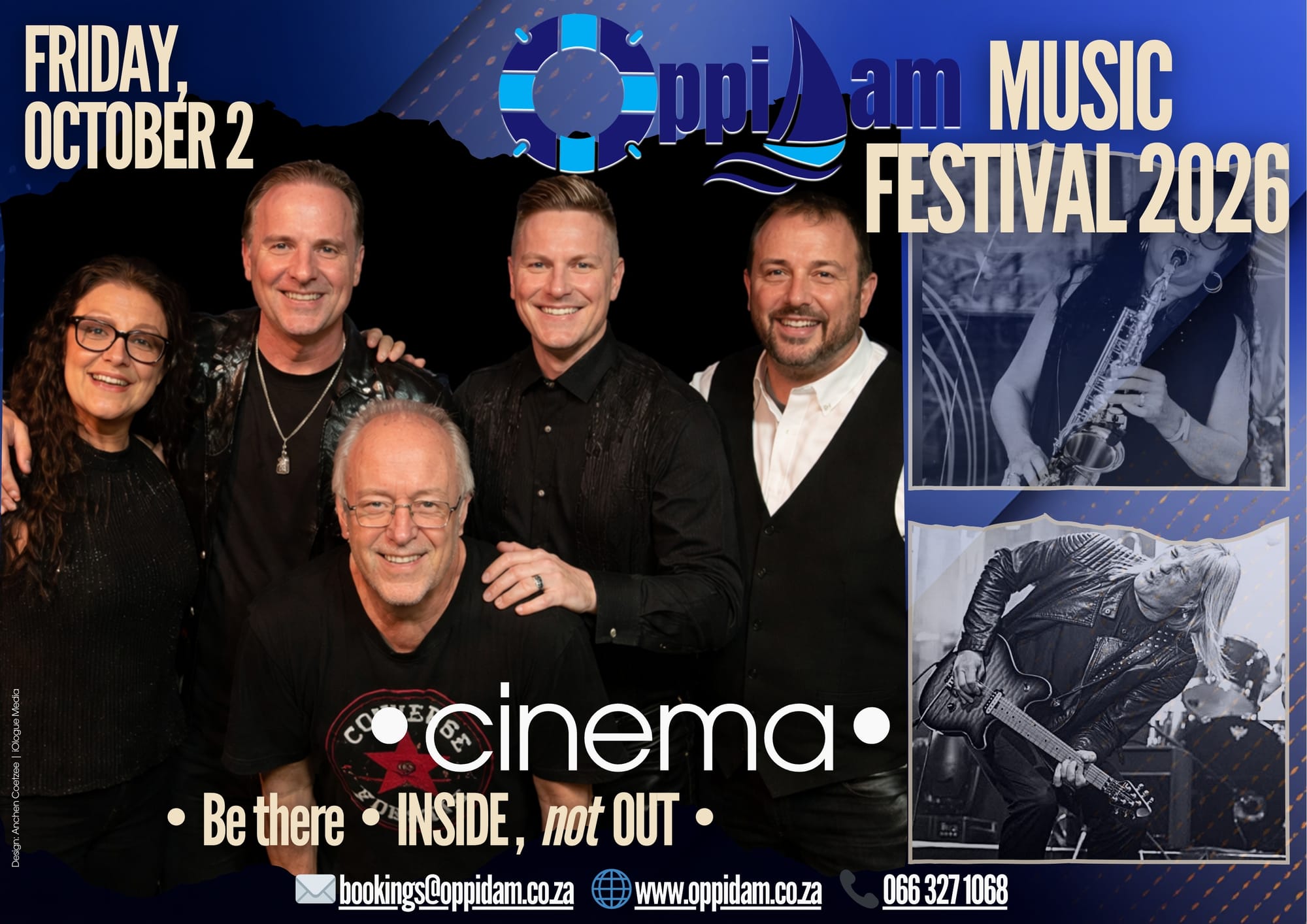 Cinema will open the OppiDam Music Festival 2026 at Vygeboom Dam on Friday, October 2, kicking off a weekend line-up that will run through until late Saturday night. It promises to be a proper dam-side celebration of music and memory under the Lowveld sky.