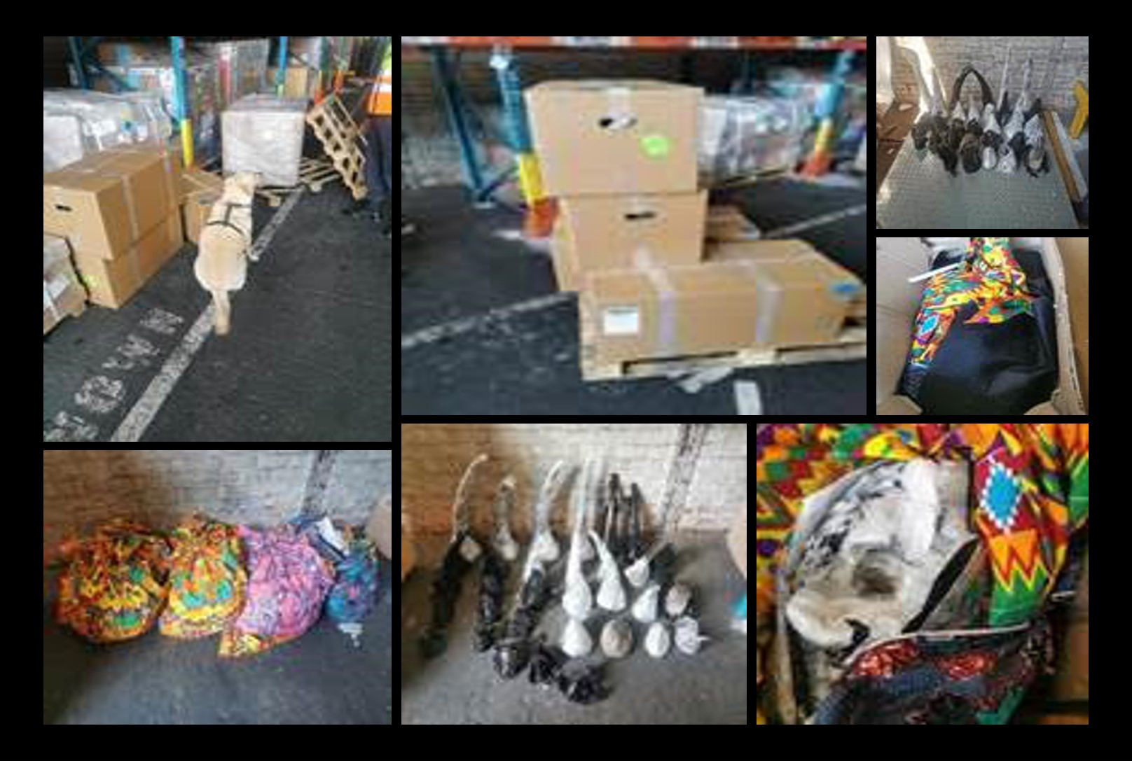 The shipment was declared as “Live Plants” and consisted of 8 pieces. During physical inspection, 6 boxes were found containing traditional material concealing, 32 pieces of rhino horn protected with bubble wrap, weighing 160kg.