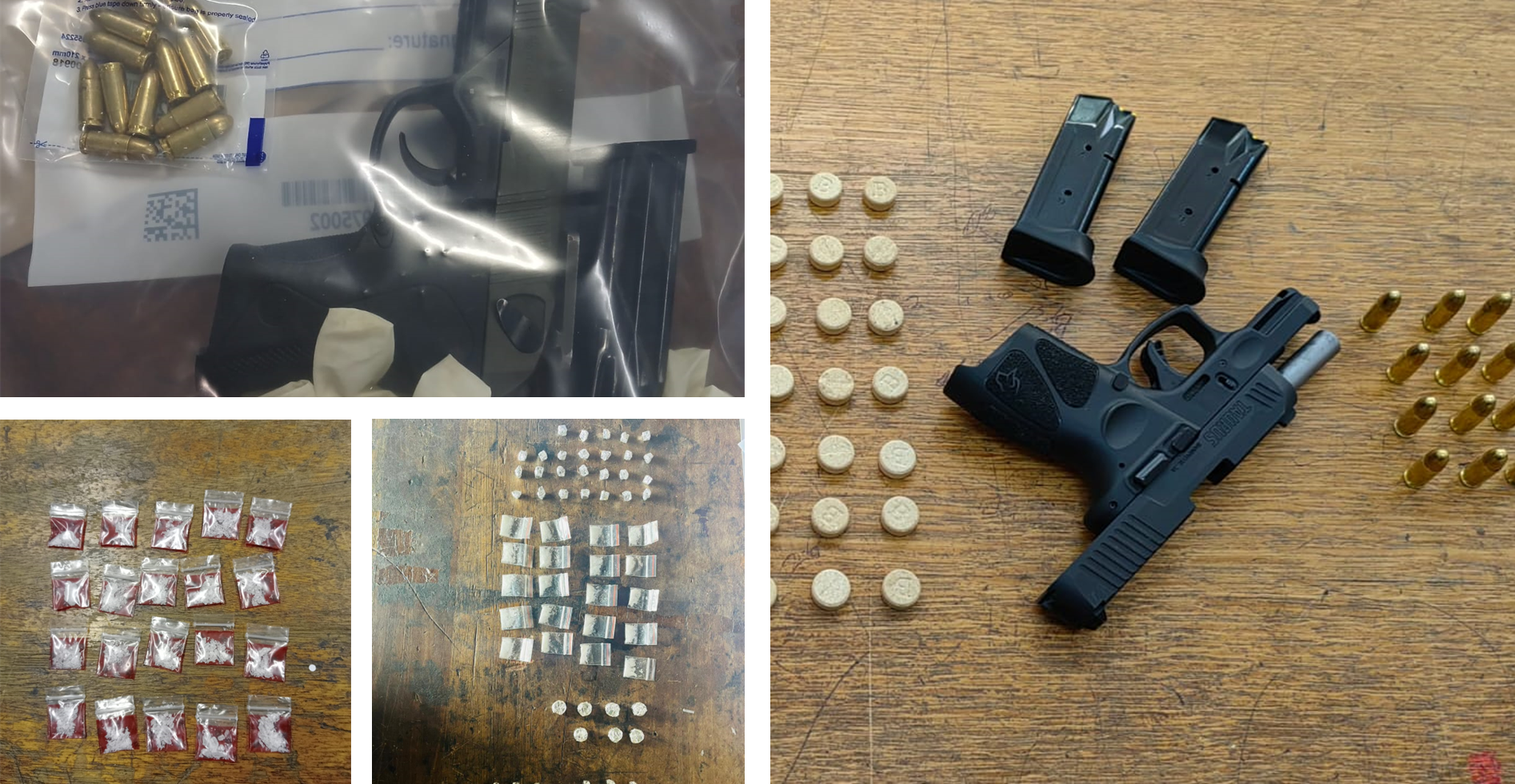 In the Muizenberg policing precinct, Public Order Police officers heard gunshots coming from the Overcome Heights informal settlement while on patrol. Police drove towards the sound of the shots and saw four men carrying firearms running from the area. At a house in Dawn Road, Seawinds, officers traced two of the suspects inside the premises. A 9mm Taurus pistol with 12 rounds of ammunition and 70 Mandrax tablets was found in their possession. The two suspects, aged 18 and 36, were arrested for possession of an unlicensed firearm, ammunition and drugs.