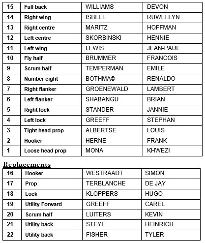 Daar is een bevestigde verandering in die voorspelers-linie, met Khwezi Mona wat sal inkom vir De-Jay Terblanche op loskopstut.