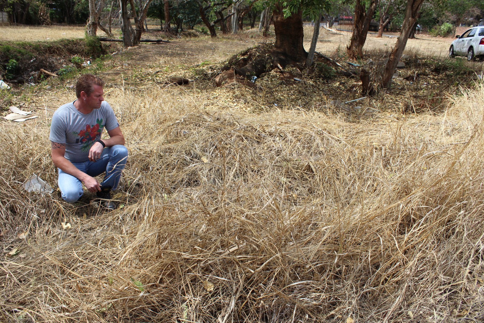 Hennie Botes kyk na die plek waar sy seun gevind is.
