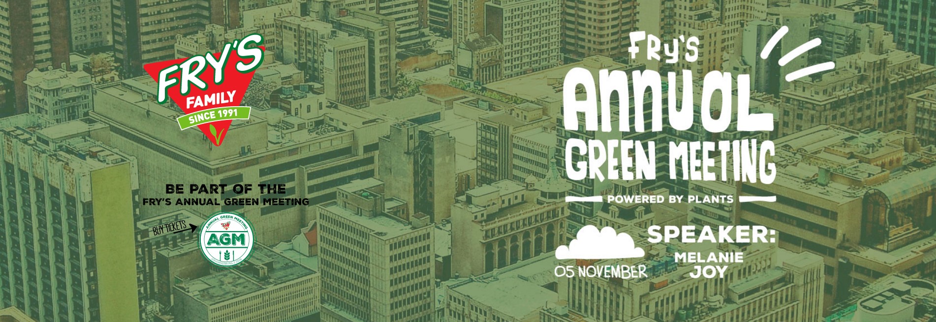 Fry's Family Foods invites you to the Johannesburg edition of their Annual Green Meeting (AGM); a day full of fun, food, music, and inspiration - powered by plants - with Greenpop the official greening partner. Come join us to learn more about effective advocacy, and the benefits of following a plant-based diet from worldwide leading experts, while eating delicious vegan food and hanging with some really cool people!