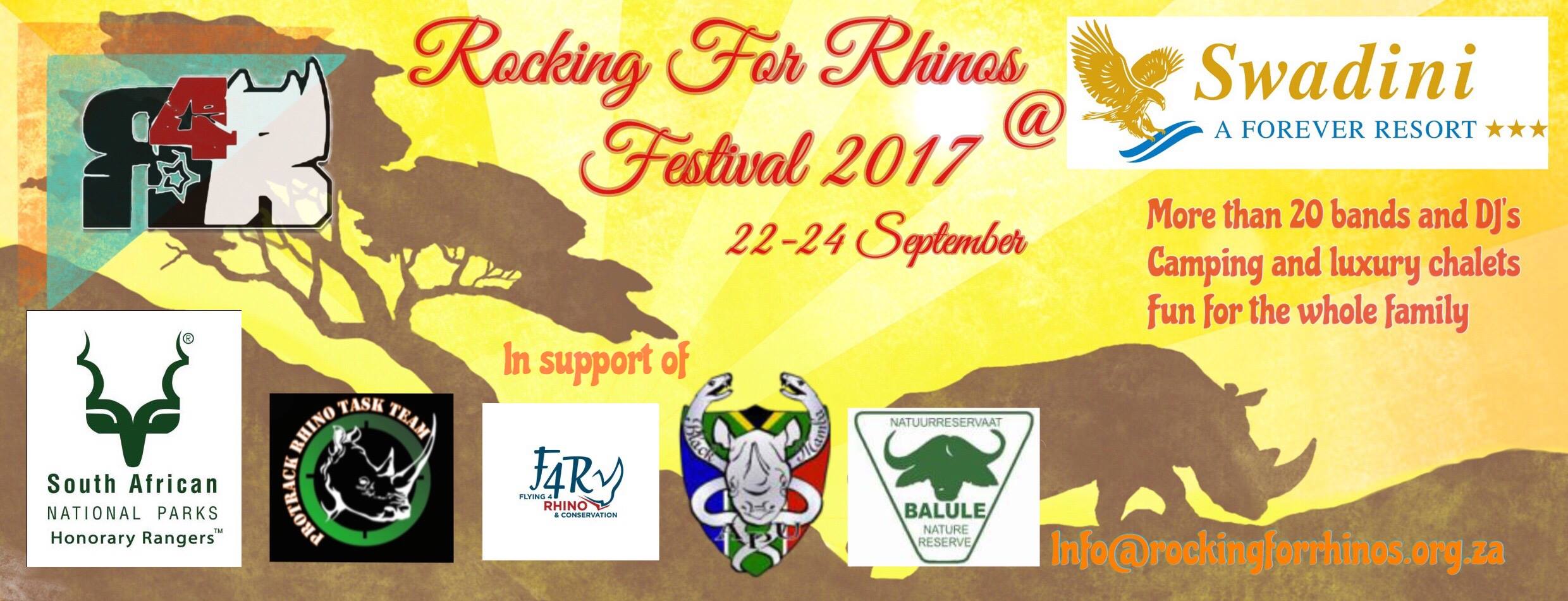 It's almost time for the sixth annual Rocking for Rhinos Music Festival in Hoedspruit. This celebration of music, at Swadini A Forever Resort over the long weekend of September 22 – 24, which hopes to be on par with the likes of Oppikoppi one day, is all in aid of saving our precious rhinos.