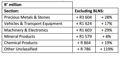 These statistics include trade data with Botswana, Lesotho, Namibia and Swaziland.