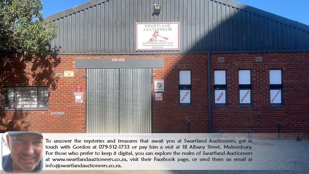 If you ever find yourself in the vicinity of Malmesbury in the Swartland area, do yourself a favour and make a pit stop at Swartland Auctioneers. Not only is it a treasure trove of antiques and secondhand goodies, but it's also home to the one and only Gordon Bain, a man who can make your heart race faster than a bid at one of their monthly auctions.