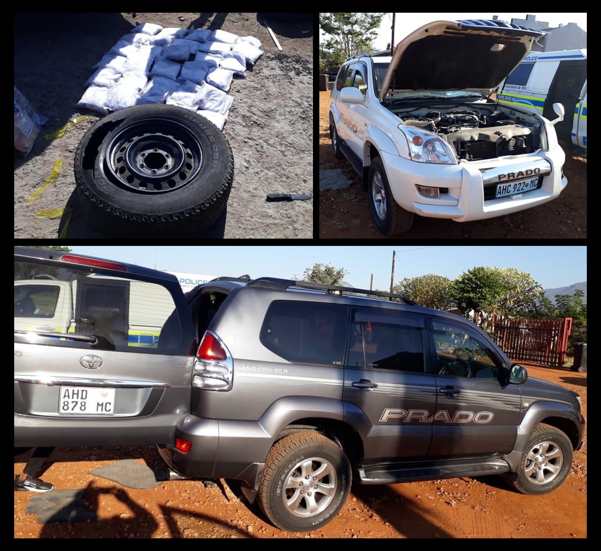 Police received a tip-off about two Toyota Prados with Mozambican registration numbers travelling on the N4, believed to carry a huge consignment of heroin. The vehicles were spotted and intercepted. One of the vehicles attempted to flee, but to no avail. Upon being searched, the drugs were found hidden in the spare wheels of the vehicles.