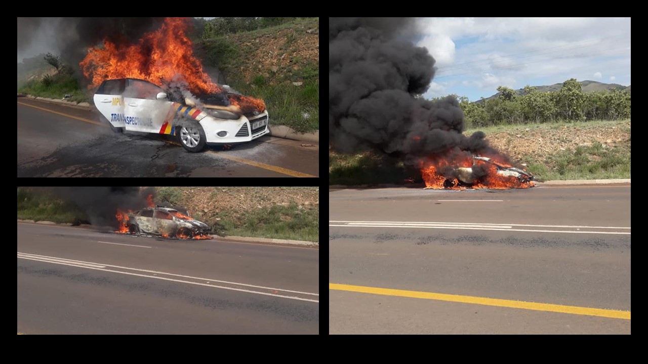 MBOMBELA - Motorists were left stunned after a vehicle belonging to the Transport Inspectorate had burst into flames on Monday.