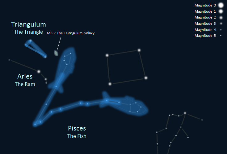 The signal originated from an area between the constellations of Pisces and Aries where there were no detectable stars or planets.